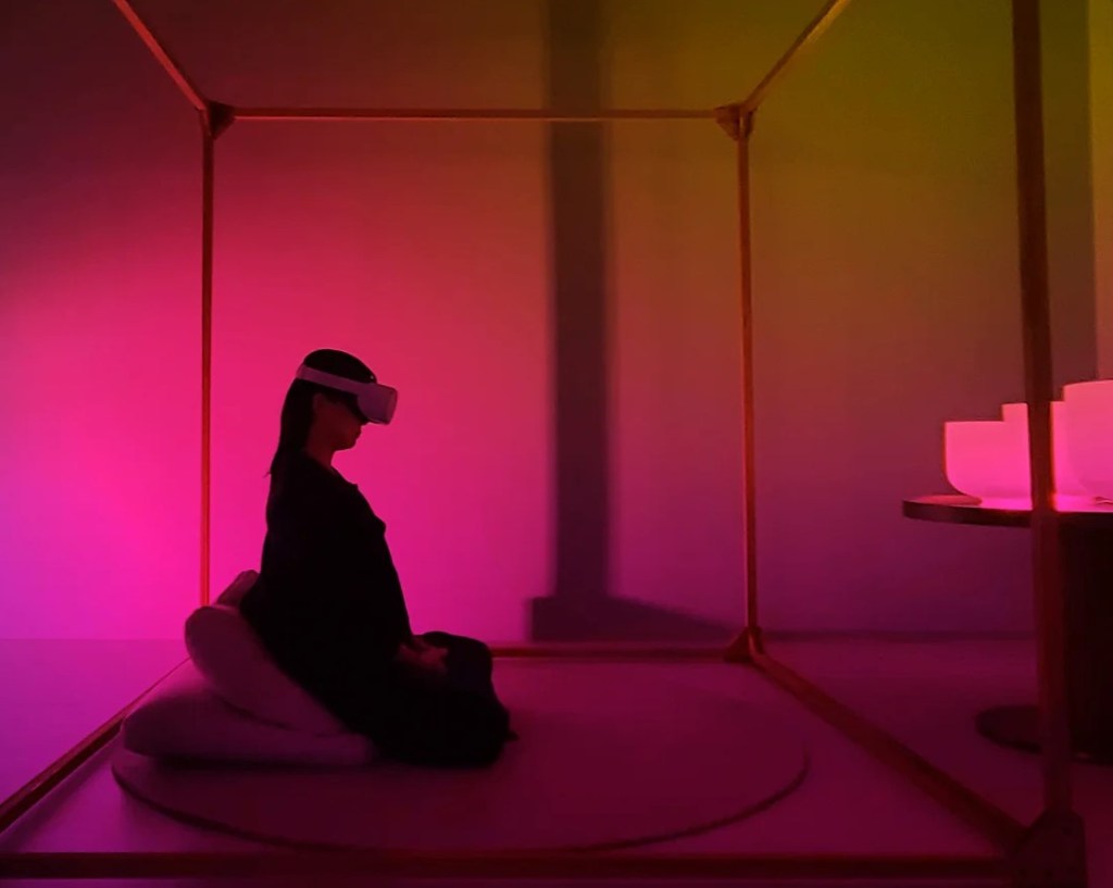 ‘가상세계에서 자신의 내면 세계를 탐구하고 신체와 연결하며 존재의 본질을 포용할 수 있는 감각적인 탐험과 가낭 안내자와의 여정을 제공합니다. 참가자들은 예술명상을 통해 내면의 탐구와 자기 발견에 참여할 수 있는 기회를 갖게 되며, 몰입형 경험을 통해 자기 인식, 개인 성장 및 자신에 대한 깊은 이해를 도모합니다.’